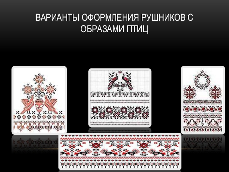 Варианты украшения рушников  ( полосная и угловая вышивка)