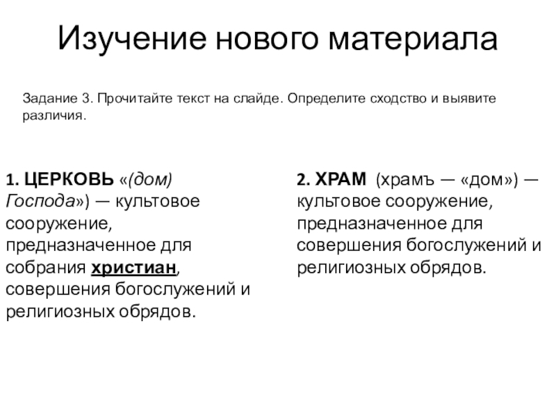 ознакомления с терминами «собор», «храм», «церковь», сравнить эти понятия