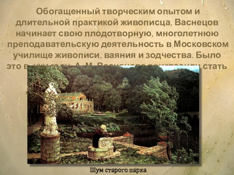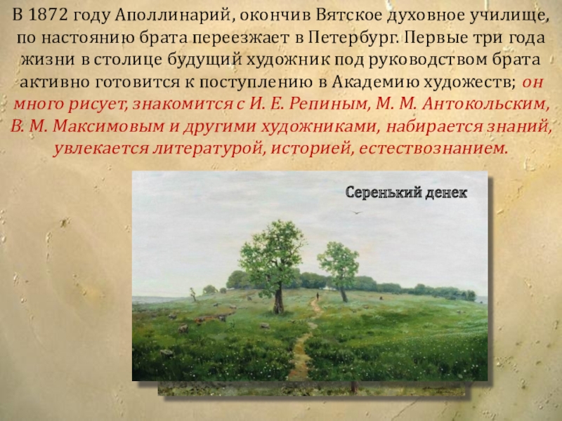 младший брат знаменитого Виктора Васнецова, известный гораздо менее, Аполлинарий Васнецов отнюдь не был его робкой тенью, а обладал вполне самобытным дарованием.