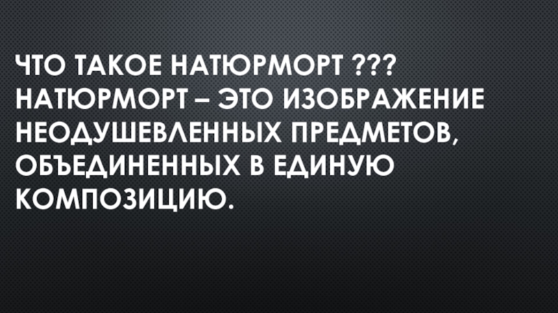 Слайд 2Что такое натюрморт ??? Натюрморт – это изображение неодушевленных предметов, объединенных в