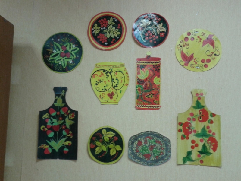 мы овладели техникой хохломской росписи на листах бумаги. Отдельно прорисовав орнамент, узор, а затем уже учились рисовать на наших работах.