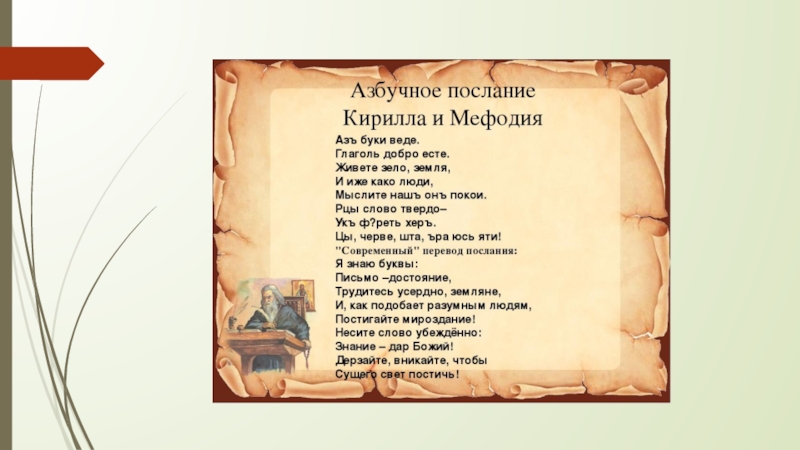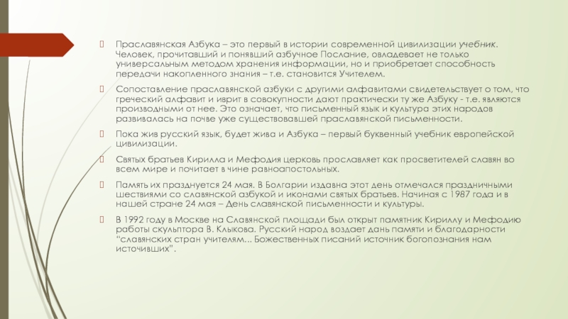 Слайд 12Праславянская Азбука – это первый в истории современной цивилизации учебник. Человек, прочитавший
