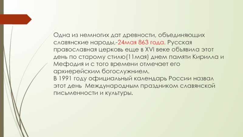 Слайд 3Одна из немногих дат древности, объединяющих славянские народы,-24мая 863 года. Русская