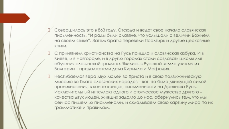 Слайд 8Совершилось это в 863 году. Отсюда и ведет свое начало славянская