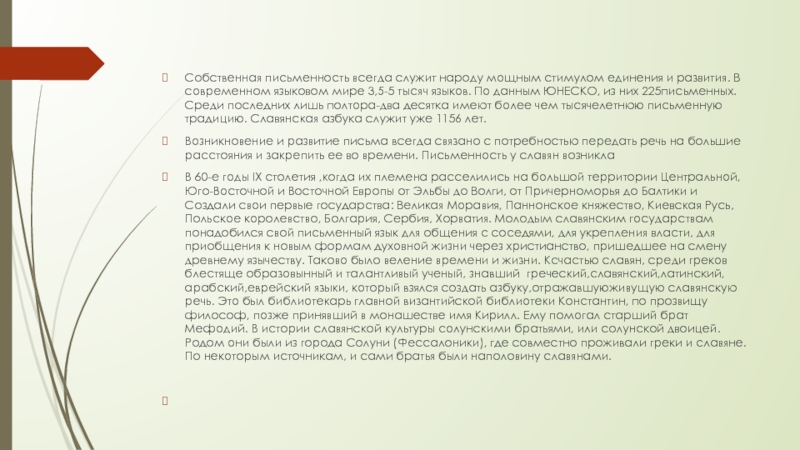 Слайд 5Собственная письменность всегда служит народу мощным стимулом единения и развития. В