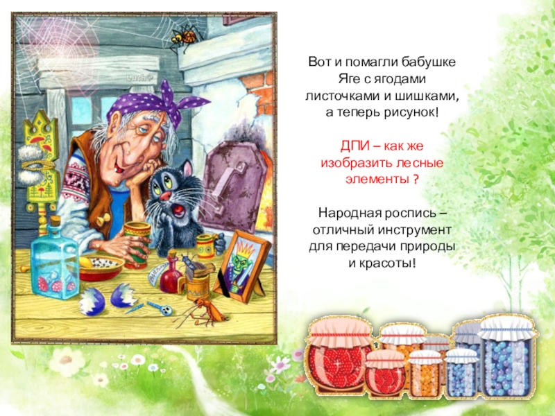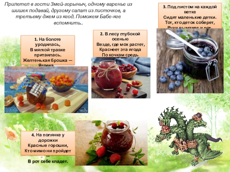 варенье из ягод, шишек и листочков. Да вот беда, на зиму заготовки сделала, а подписать забыла, где что на полке стоит не знает.