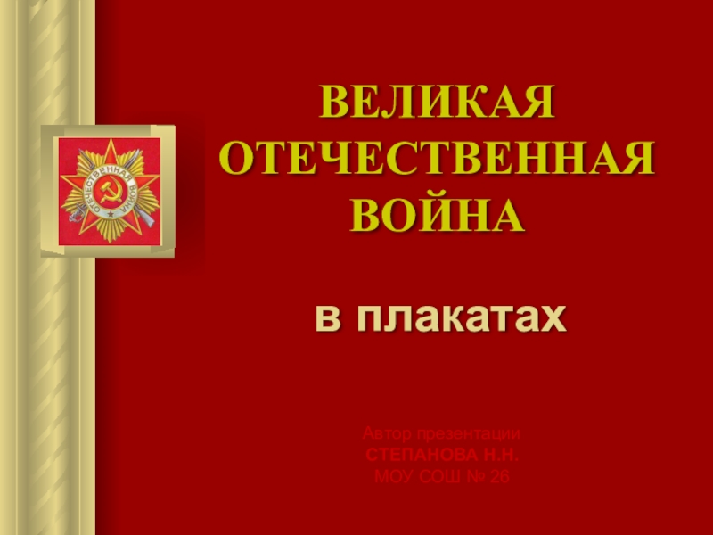 ВЕЛИКАЯ ОТЕЧЕСТВЕННАЯ  ВОЙНА   в плакатахАвтор презентацииСТЕПАНОВА Н.Н.МОУ СОШ № 26
