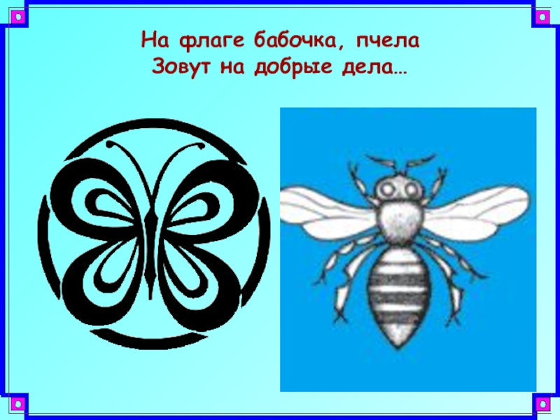 Слайд 8На флаге бабочка, пчела Зовут на добрые дела…