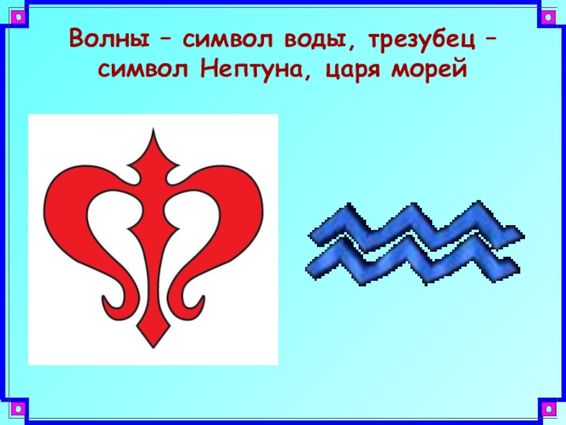 Слайд 12Волны – символ воды, трезубец – символ Нептуна, царя морей