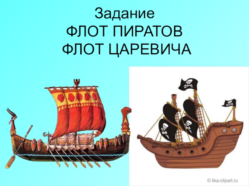 Слайд 23Задание ФЛОТ ПИРАТОВ ФЛОТ ЦАРЕВИЧА
