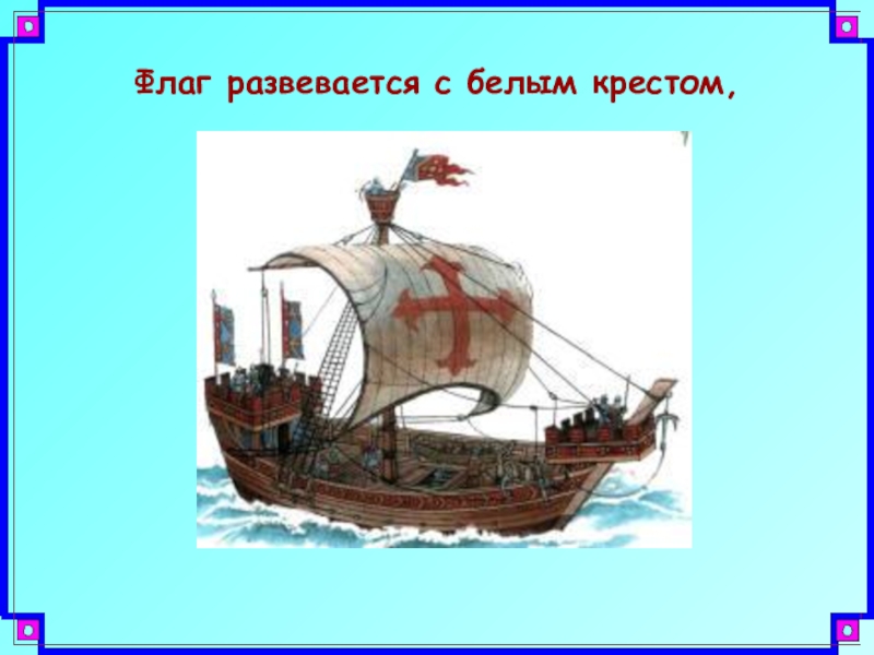 Слайд 16Флаг развевается с белым крестом,