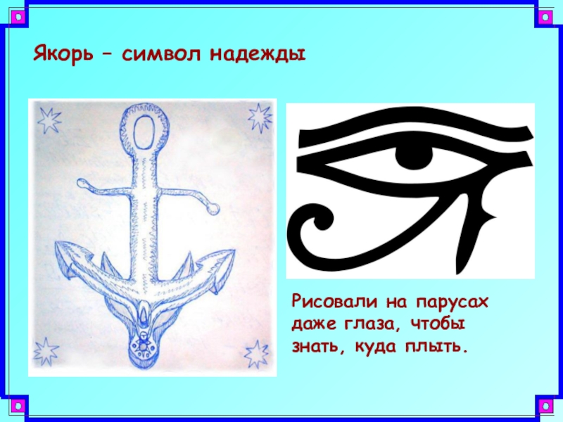 Якорь – символ надеждыРисовали на парусах даже глаза, чтобы знать, куда плыть.