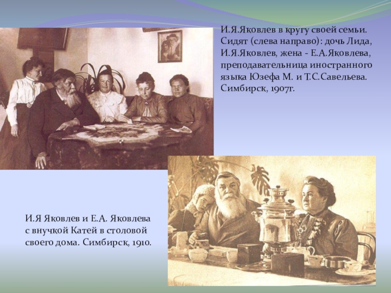 Слайд 18И.Я.Яковлев в кругу своей семьи. Сидят (слева направо): дочь Лида, И.Я.Яковлев,