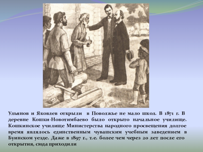 Слайд 11Ульянов и Яковлев открыли в Поволжье не мало школ. В 1871