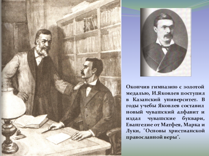 Слайд 8Окончив гимназию с золотой медалью, И.Яковлев поступил в Казанский университет. В