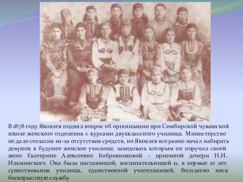 Слайд 15В 1878 году Яковлев поднял вопрос об организации при Симбирской чувашской