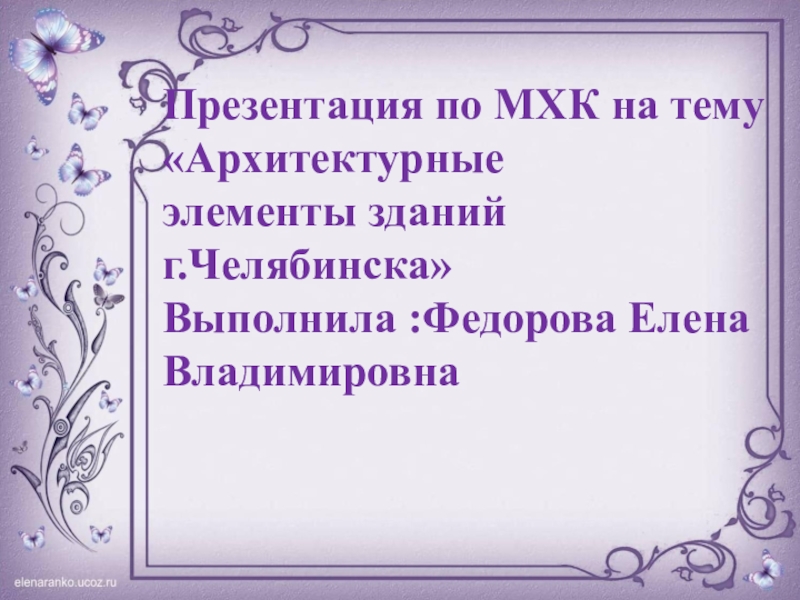 Презентация по МХК на тему «Архитектурные элементы зданий г.Челябинска»Выполнила :Федорова Елена Владимировна