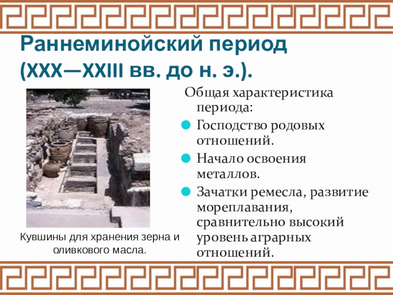 Слайд 5Раннеминойский период (XXX—XXIII вв. до н. э.).