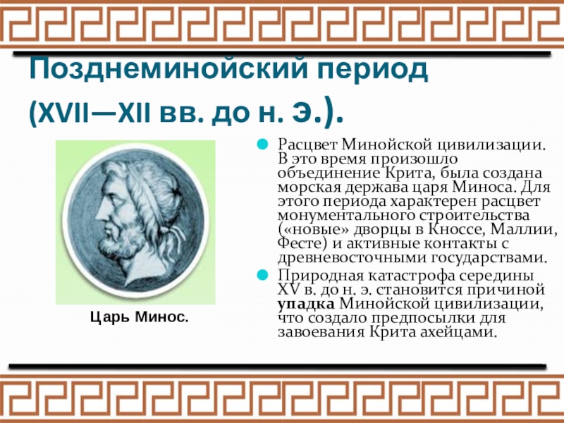 Слайд 8Позднеминойский период (XVII—XII вв. до н. э.).