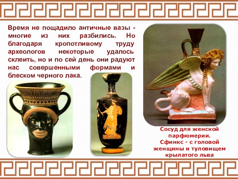 Слайд 52Время не пощадило античные вазы - многие из них разбились. Но