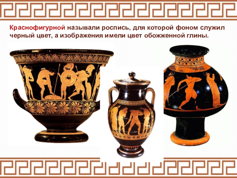 Слайд 53Краснофигурной называли роспись, для которой фоном служил черный цвет, а изображения
