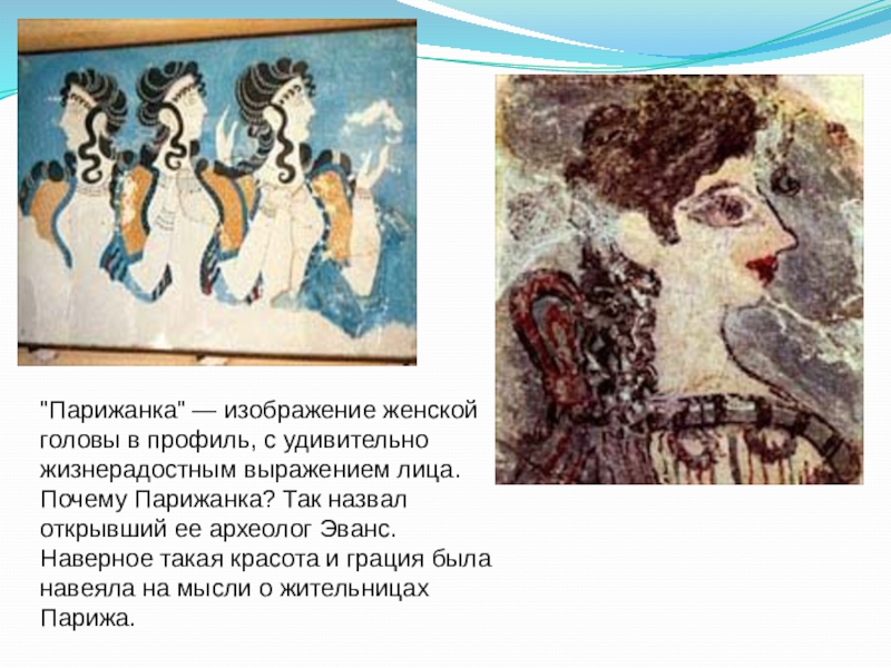 лица. Почему Парижанка? Так назвал открывший ее археолог Эванс. Наверное такая красота и грация была навеяла на мысли о жительницах Парижа.