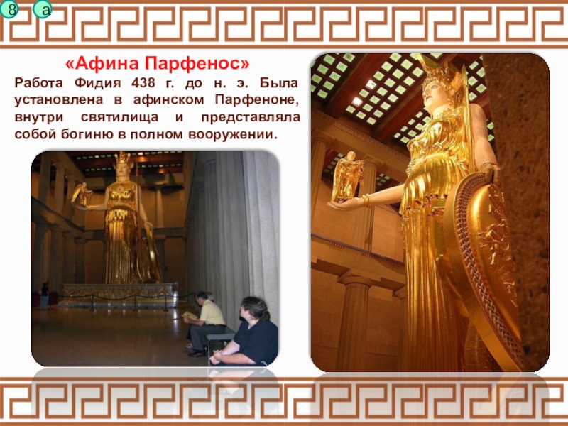 в афинском Парфеноне, внутри святилища и представляла собой богиню в полном вооружении.