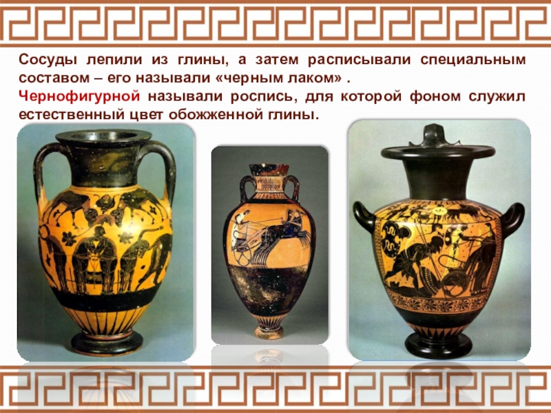 Слайд 51Сосуды лепили из глины, а затем расписывали специальным составом – его