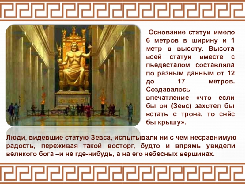 Слайд 44Люди, видевшие статую Зевса, испытывали ни с чем несравнимую радость, переживая
