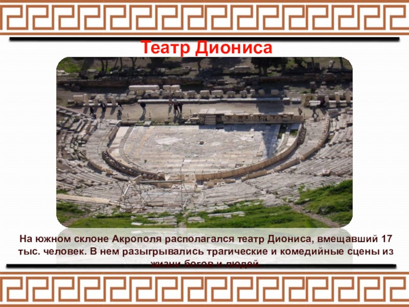 На южном склоне Акрополя располагался театр Диониса, вмещавший 17 тыс.