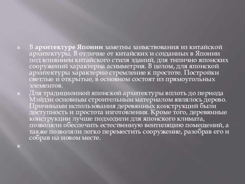 Слайд 2В архитектуре Японии заметны заимствования из китайской архитектуры. В отличие от китайских