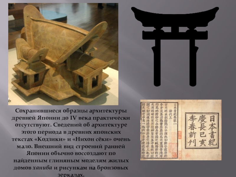 Слайд 4Сохранившиеся образцы архитектуры древней Японии до IV века практически отсутствуют. Сведений