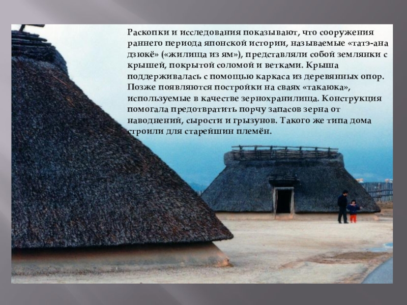 Слайд 5Раскопки и исследования показывают, что сооружения раннего периода японской истории, называемые