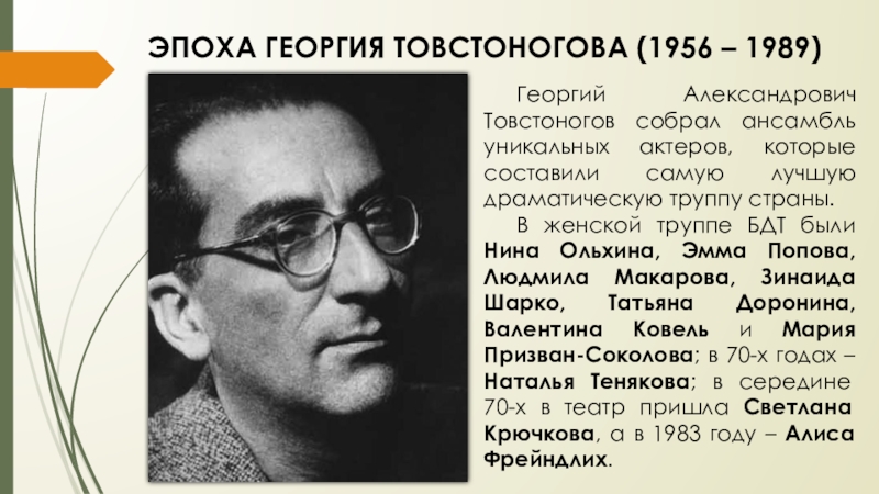 Слайд 8ЭПОХА ГЕОРГИЯ ТОВСТОНОГОВА (1956 – 1989)