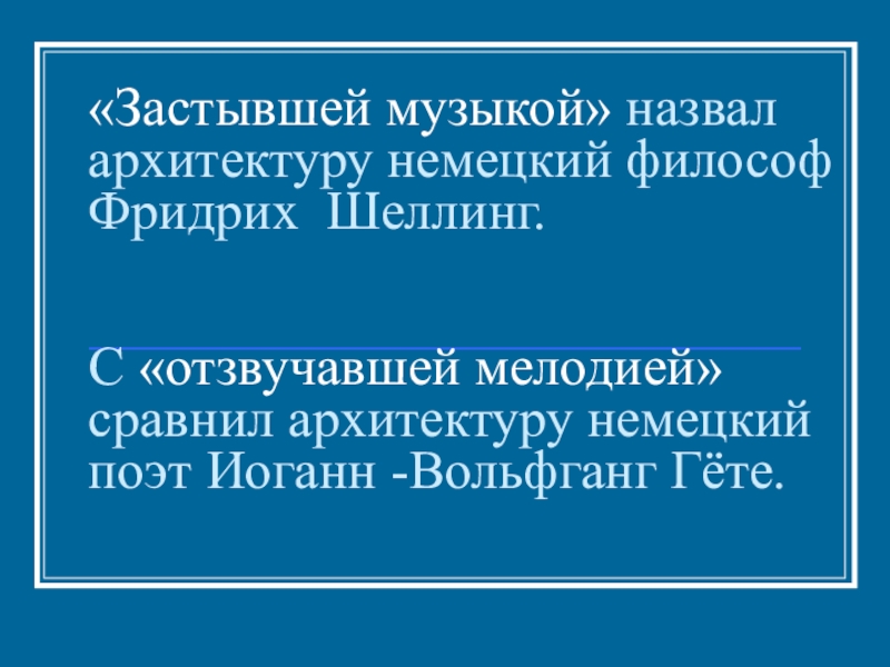 Слайд 7«Застывшей музыкой» назвал архитектуру немецкий философ Фридрих Шеллинг.