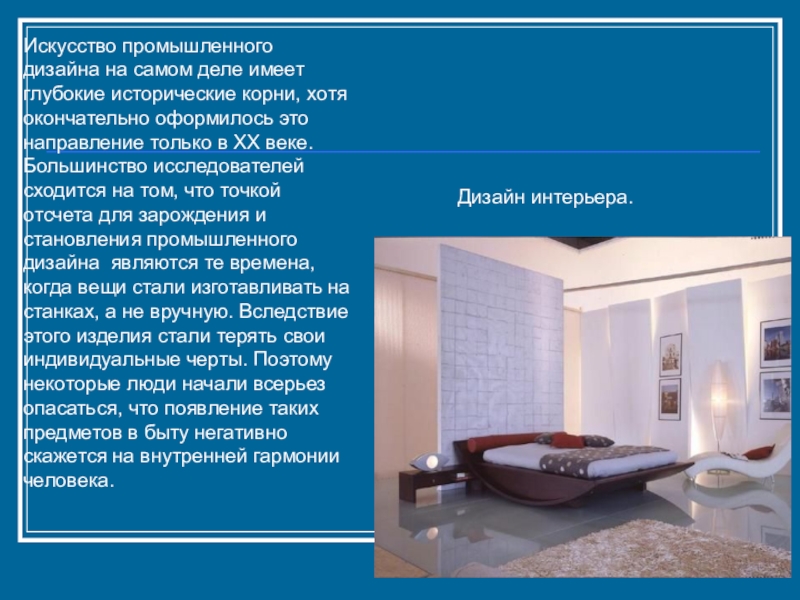 Слайд 47Искусство промышленного дизайна на самом деле имеет глубокие исторические корни, хотя