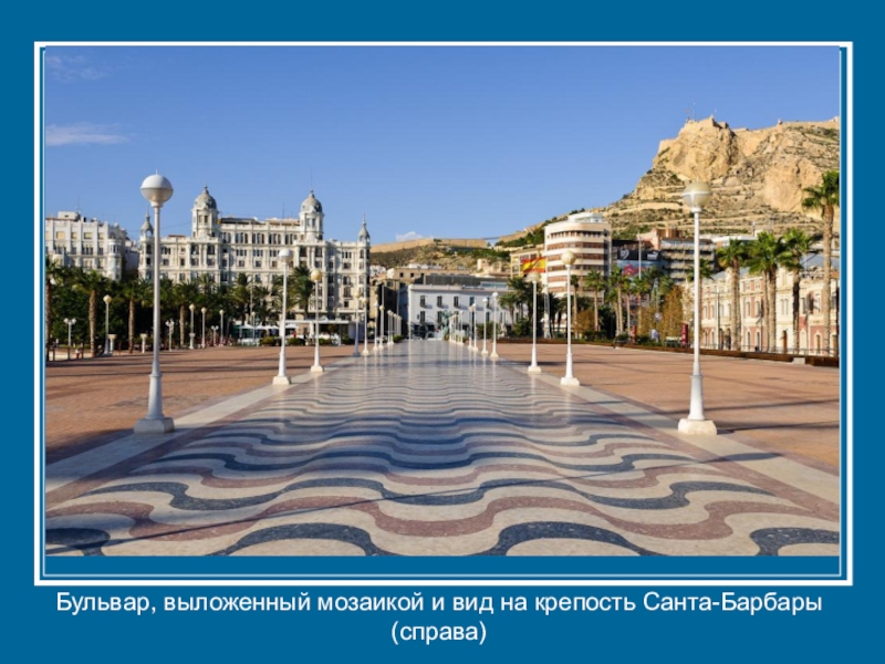 Слайд 31Бульвар, выложенный мозаикой и вид на крепость Санта-Барбары (справа)