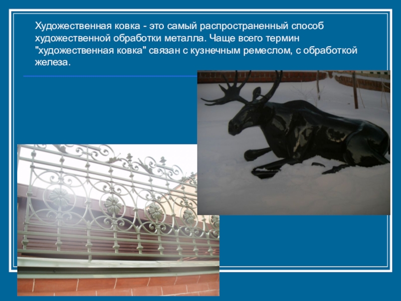 Слайд 53Художественная ковка - это самый распространенный способ художественной обработки металла. Чаще