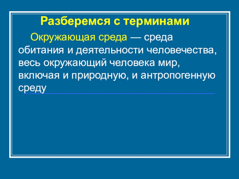 Окружающая среда — среда обитания и деятельности человечества, весь