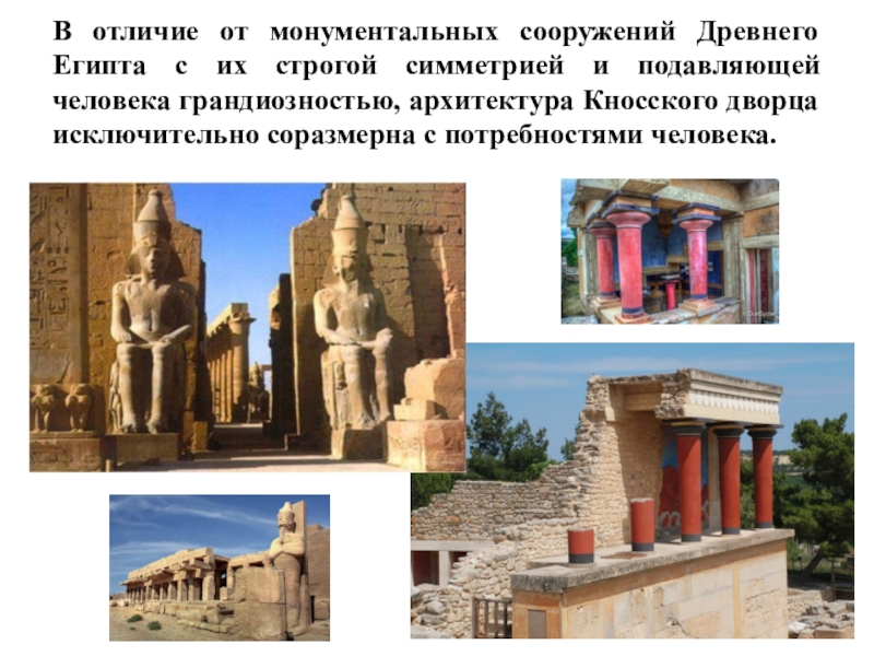 и подавляющей человека грандиозностью, архитектура Кносского дворца исключительно соразмерна с потребностями человека.