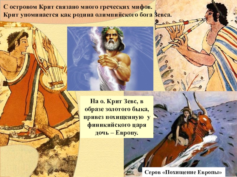 Слайд 7На о. Крит Зевс, в образе золотого быка, привез похищенную у