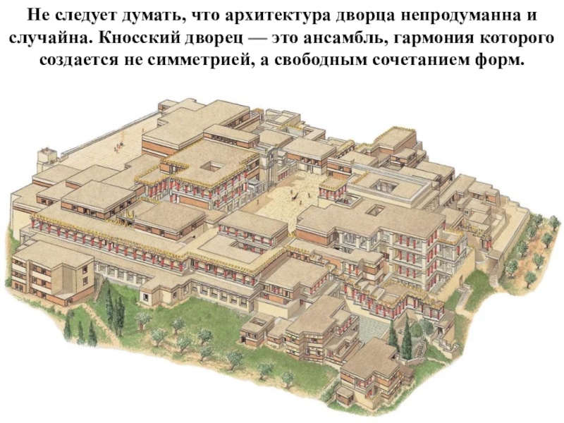 Слайд 11Не следует думать, что архитектура дворца непродуманна и случайна. Кносский дворец
