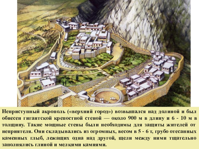 Слайд 16Неприступный акрополь («верхний город») возвышался над долиной и был обнесен гигантской