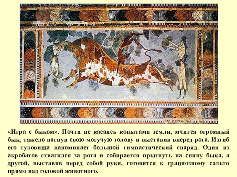Слайд 22«Игра с быком». Почти не касаясь копытами земли, мчится огромный бык,
