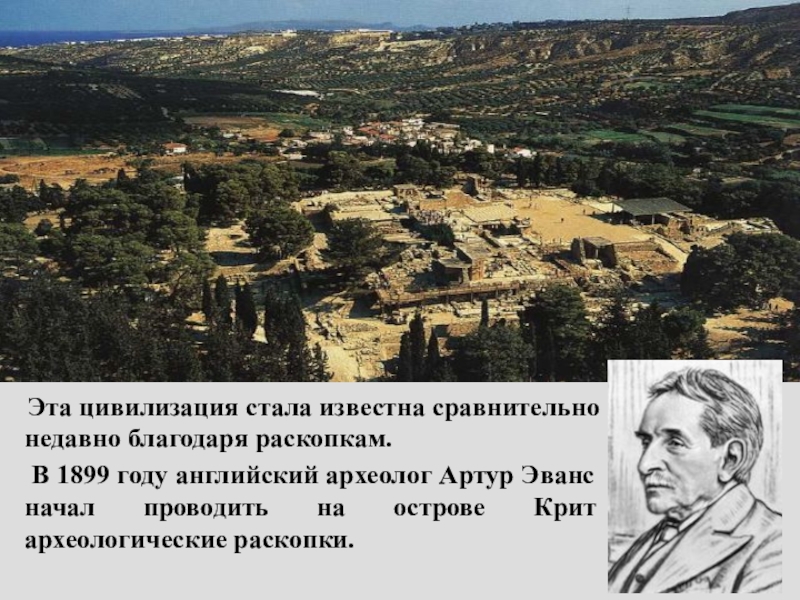 В 1899 году английский археолог Артур Эванс начал проводить на острове Крит археологические раскопки.