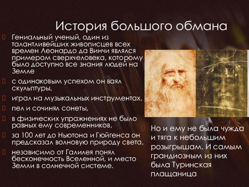 Но и ему не была чужда и тяга к небольшим розыгрышам. И самым грандиозным из них была Туринская плащаница
