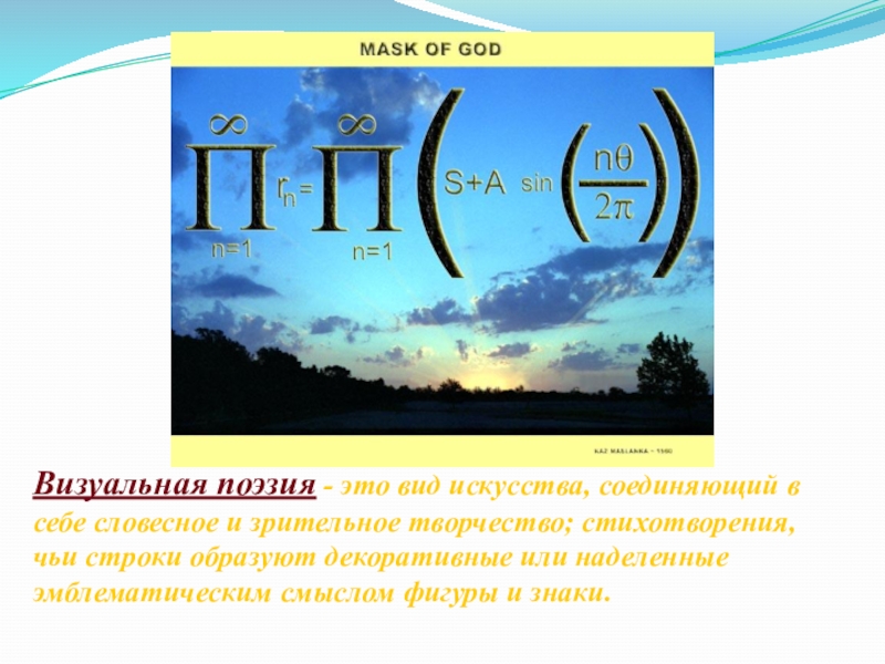 Слайд 28Визуальная поэзия - это вид искусства, соединяющий в себе словесное и