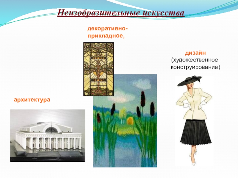 -неизобразительные искусства (архитектура, декоративно-прикладное искусство и художественное конструирование (дизайн)).