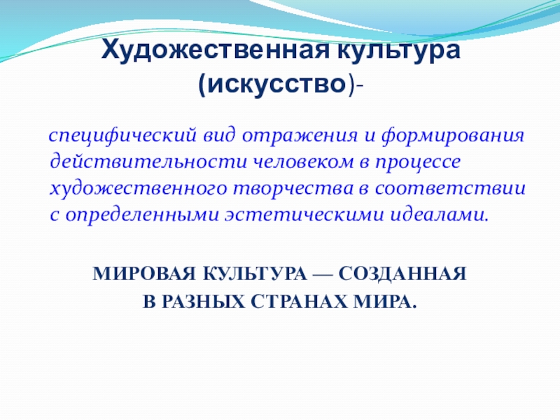 Слайд 3Художественная культура(искусство)-