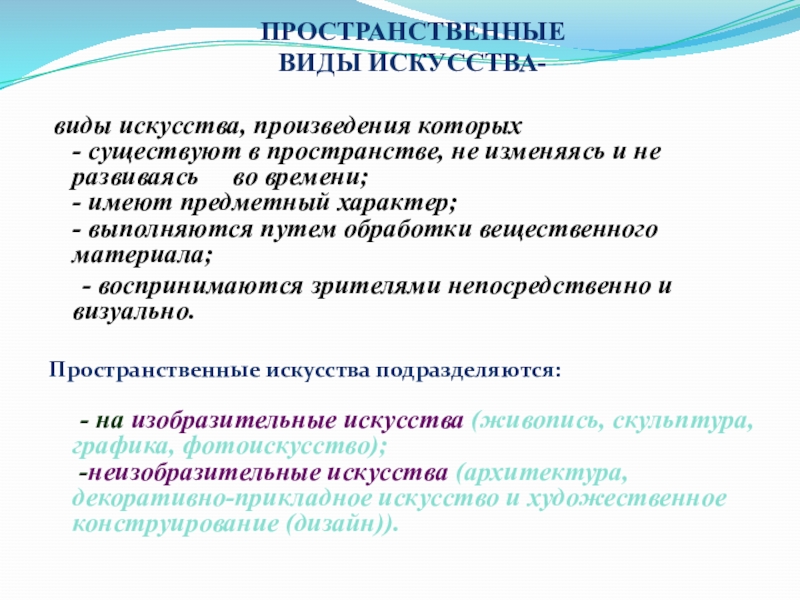 Пространственные искусства подразделяются: